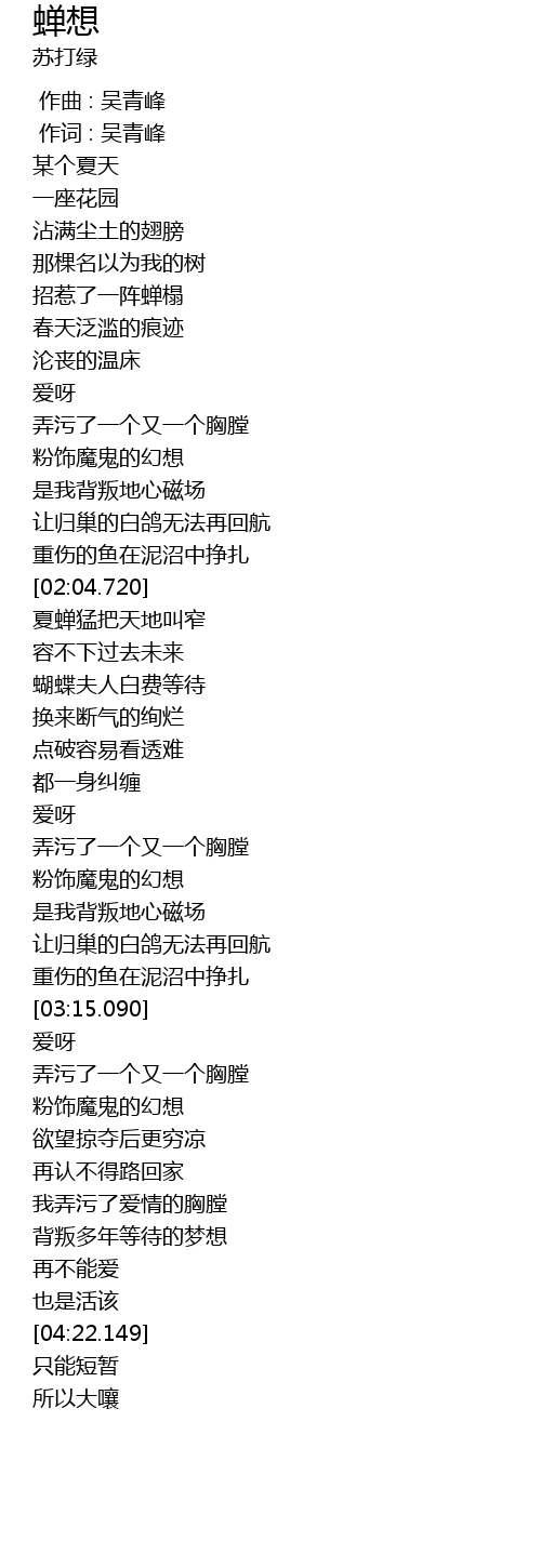 | [02:05.610] | 夏蝉猛把天地叫窄 |