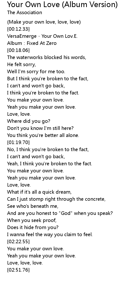 | [00:14.06] | VersaEmerge Your Own Lov. E. |