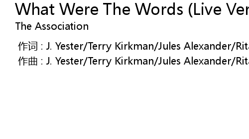 | [00:00.000] | zuo qu : J. Yester Terry Kirkman Jules Alexander Rita Martinson |