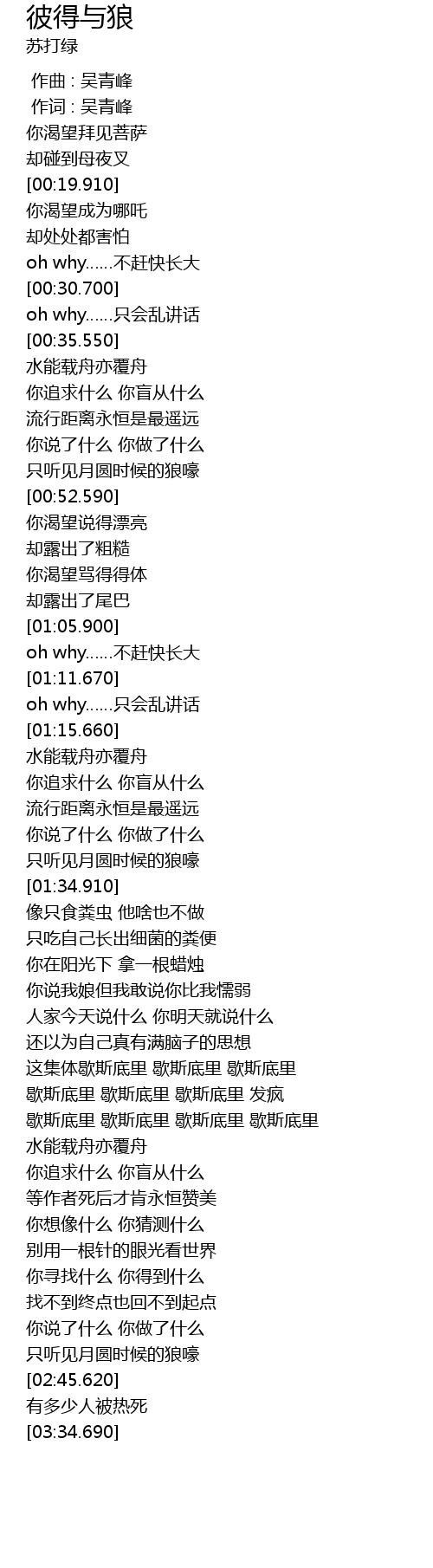 | [00:00.00] | 作曲 : 吴青峰 |