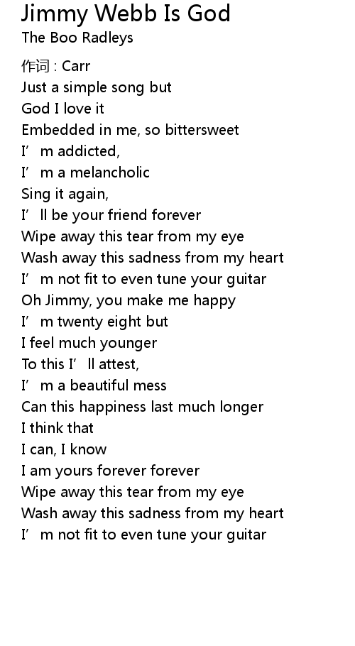 | Song | Jimmy Webb Is God |