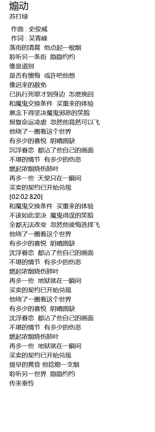 | [02:19.190] | 不该如此坚决 魔鬼得逞的笑脸 |