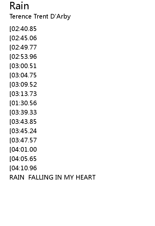 | [04:30.19] | RAIN FALLING IN MY HEART |