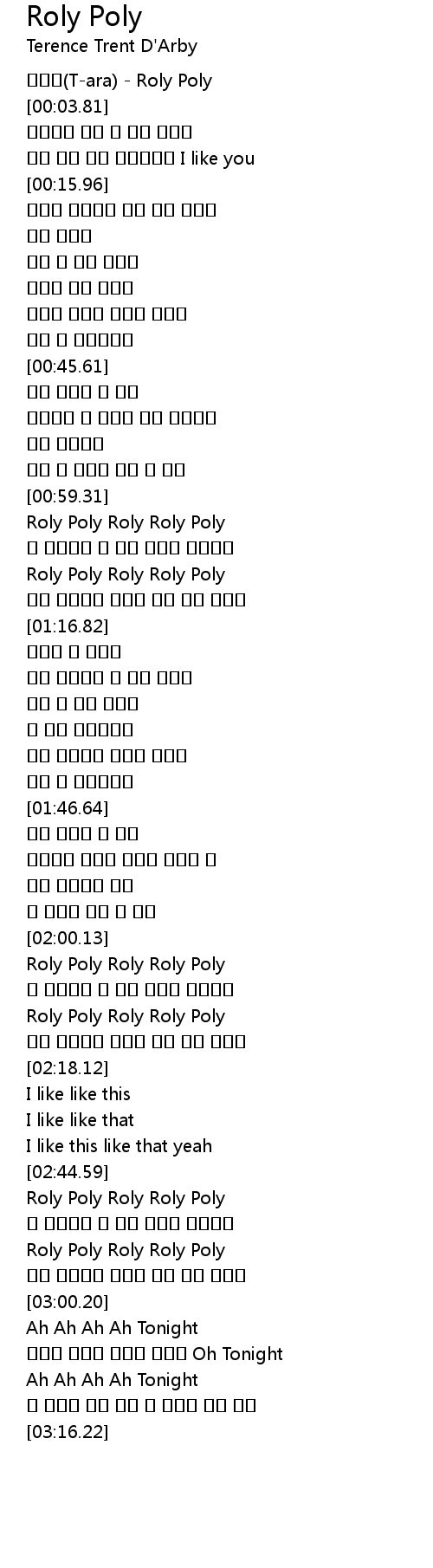 | [02:00.93] | Roly Poly Roly Roly Poly |