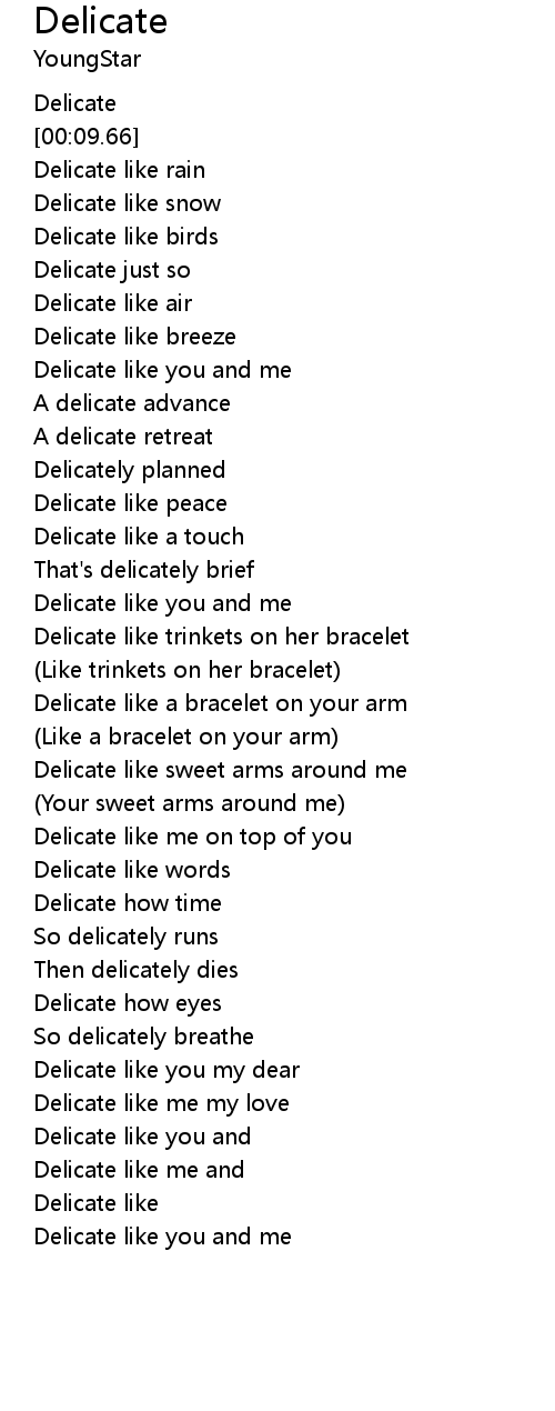 | [00:08.69] | Delicate |