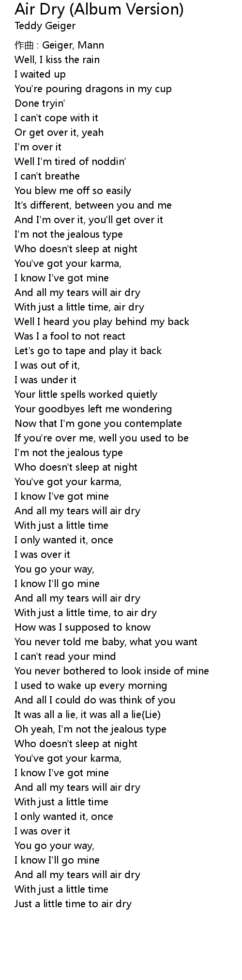 | Song | Air Dry (Album Version) |