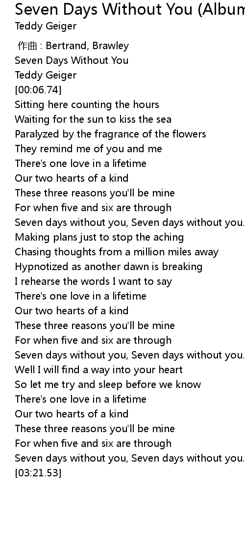 | [03:03.02] | Seven days without you, Seven days without you. |