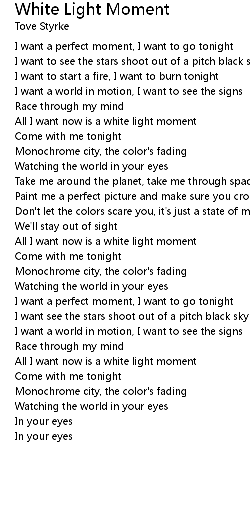 All I want now is a white light moment |