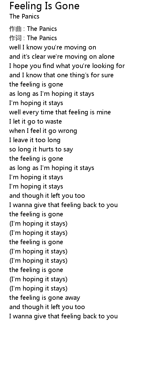 | the feeling is gone away | |