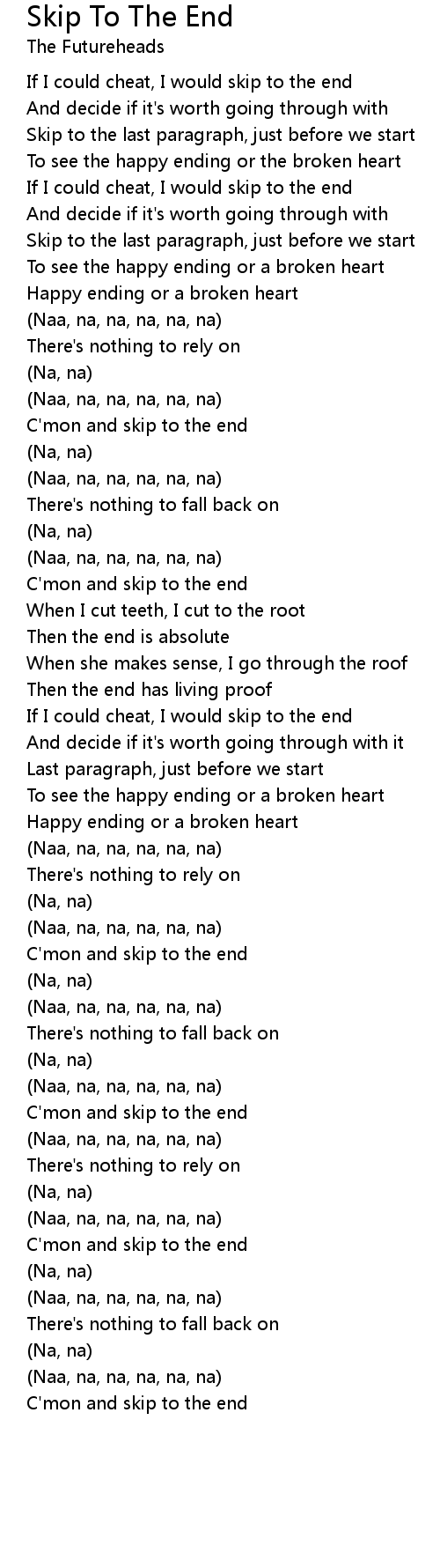 C'mon and skip to the end |
