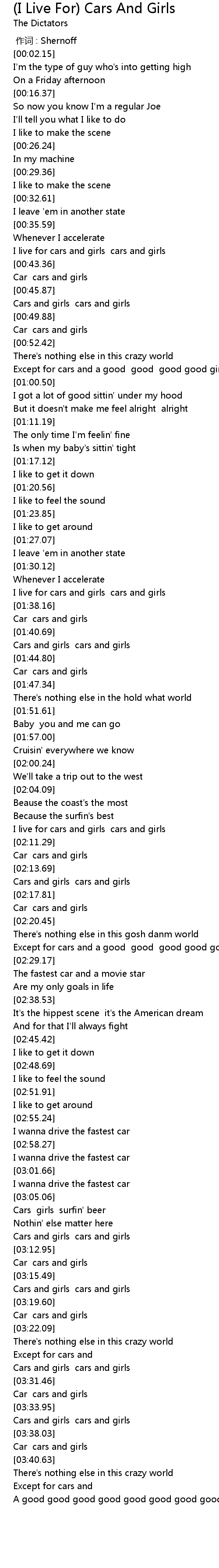 | [02:24.60] | Except for cars and a good good good good good girls |