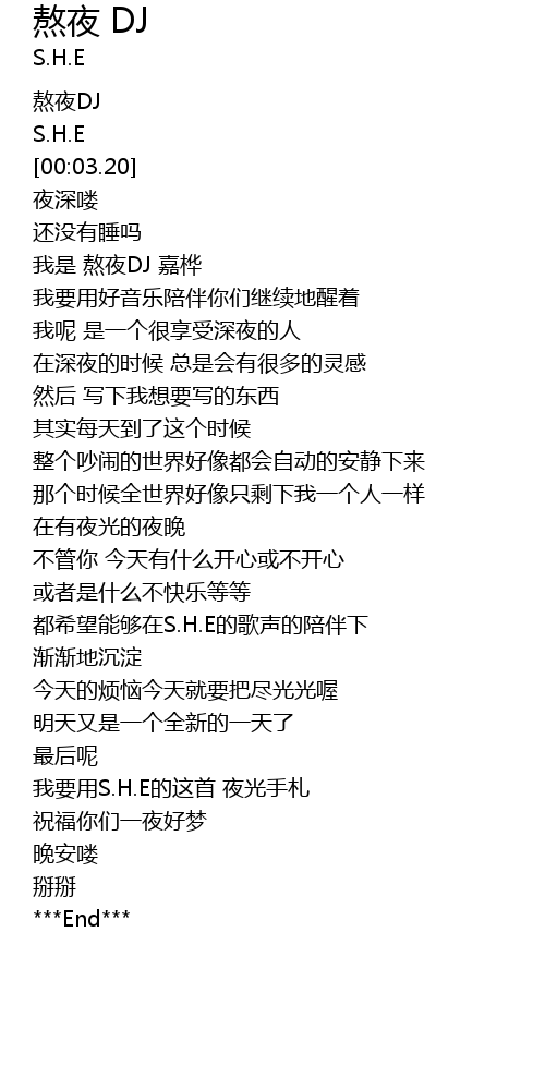 | [00:52.32] | 我要用S.H.E的这首 夜光手札 |