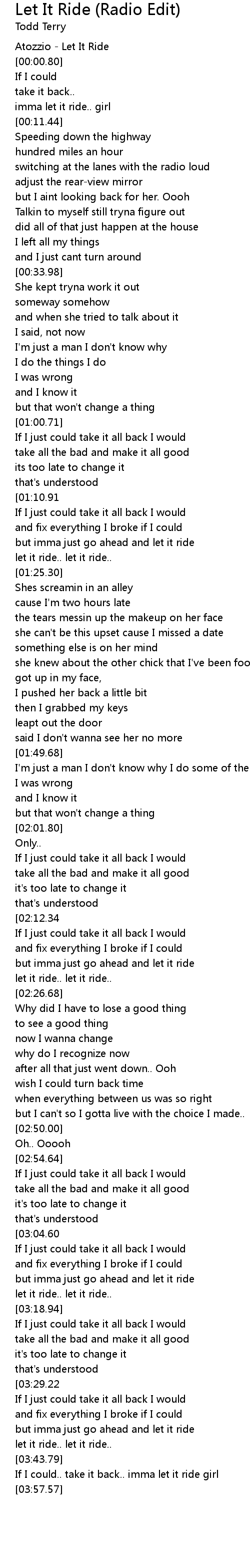 [03:47.22] If I could.. take it back.. imma let it ride girl