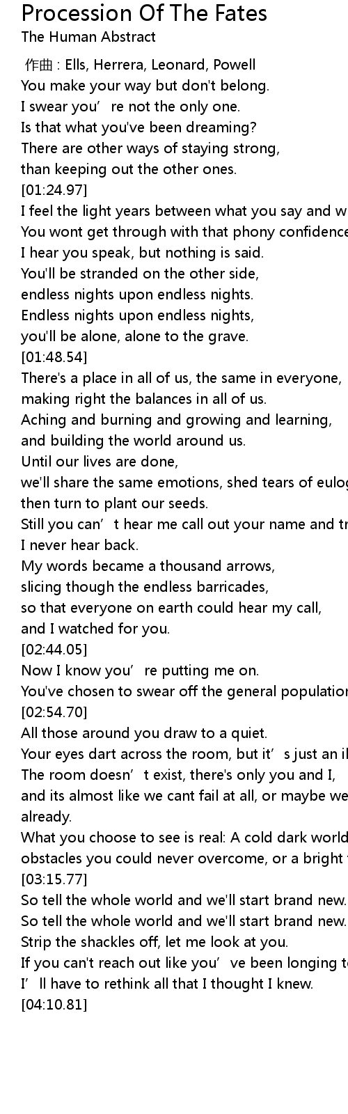 | [03:04.24] | and its almost like we cant fail at all, or maybe we' ve failed already. |