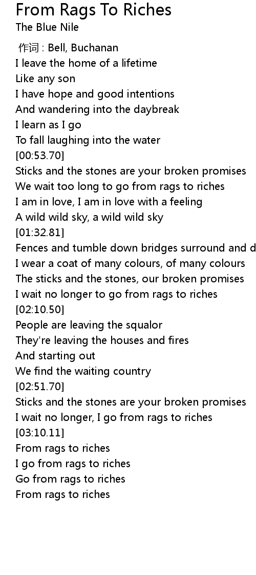 | [02:03.35] | I wait no longer to go from rags to riches |