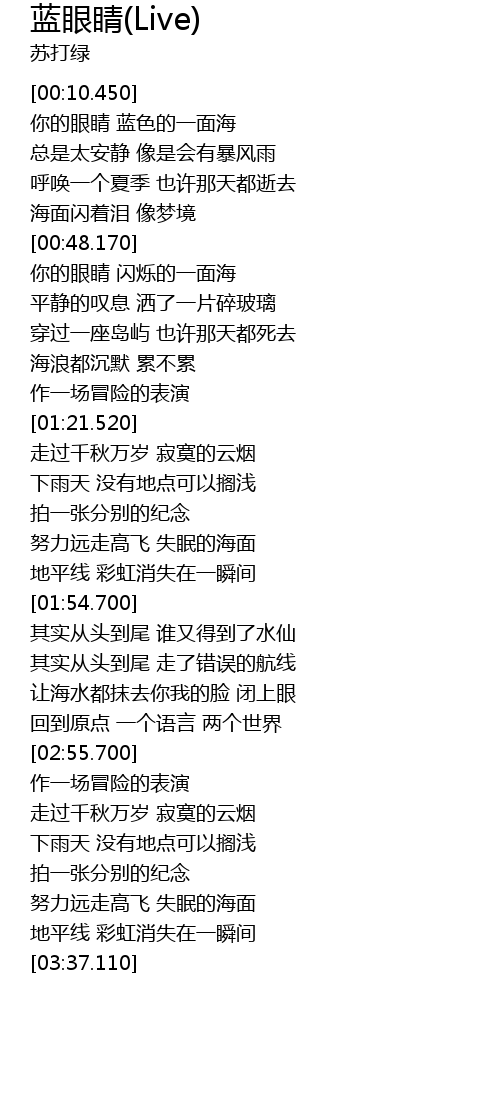 | [00:18.450] | 你的眼睛 蓝色的一面海 |
