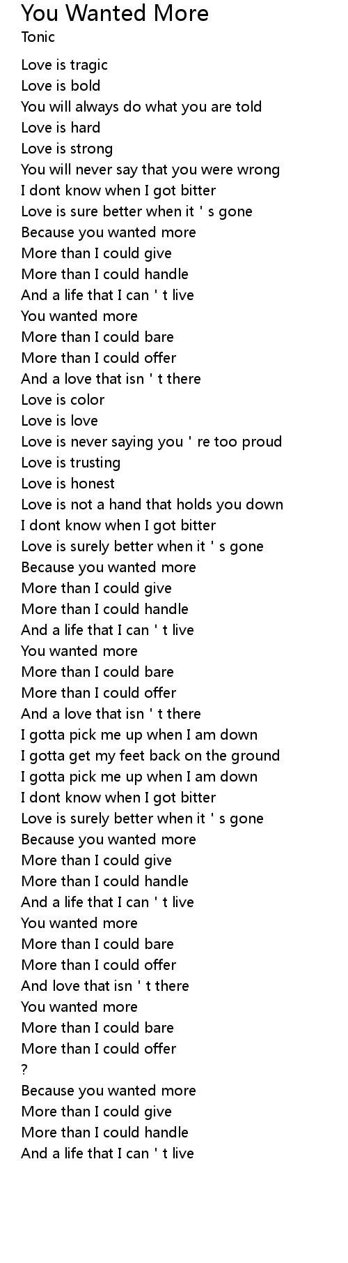 | [00:42] | More than I could give |