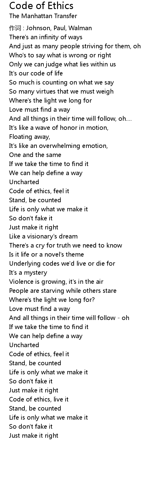 | Code of ethics, live it | |