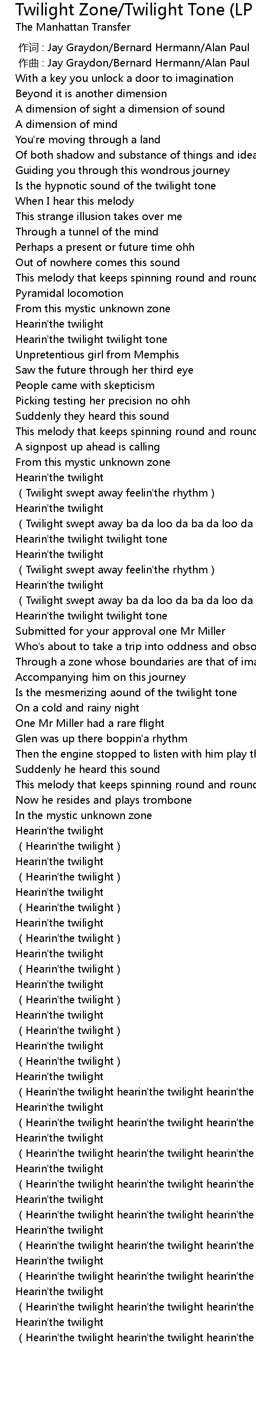| [01:03.454] | Is the hypnotic sound of the twilight tone |