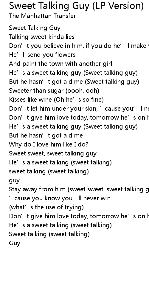 | [00:55.880] | He’s a sweet talking guy (Sweet talking guy) |