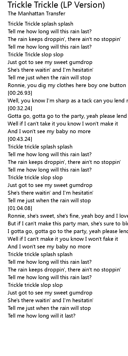 [01:51.91] The rain keeps droppin', there ain't no stoppin'