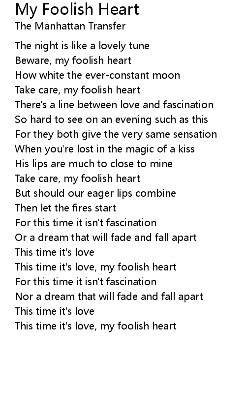Take care, my foolish heart |