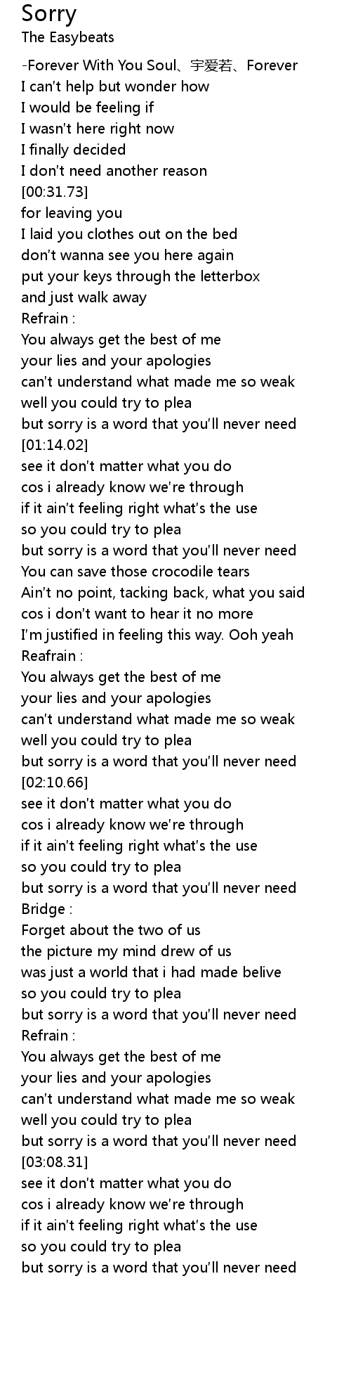 | [02:45.29] | but sorry is a word that you ll never need |