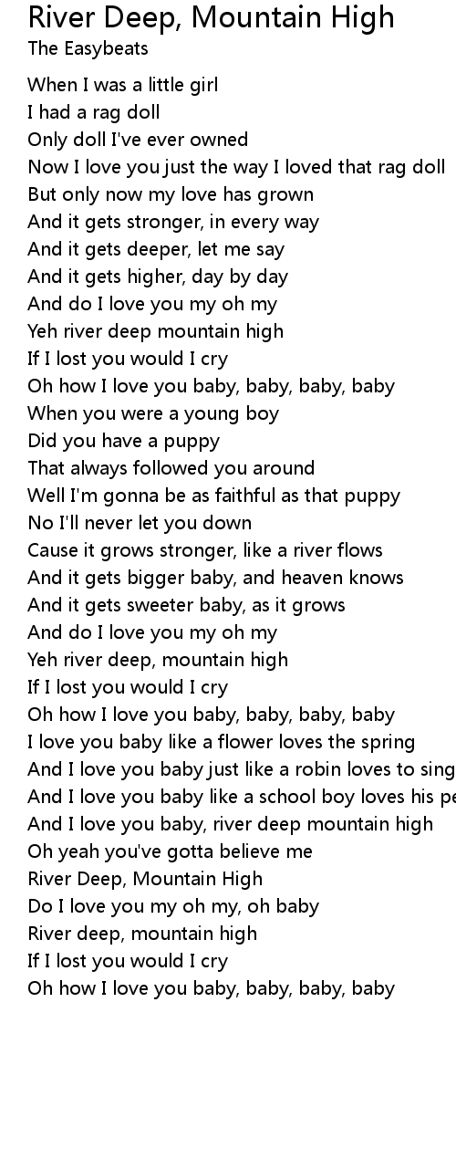 And I love you baby, river deep mountain high |