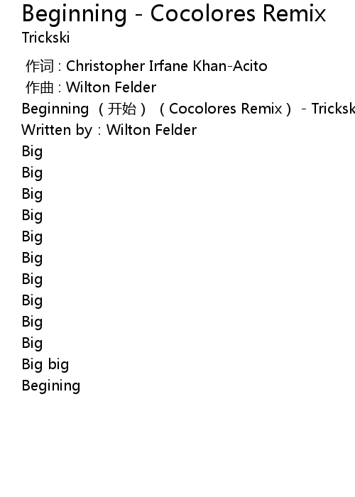 | [00:00.10] | Beginning (开始) (Cocolores Remix) - Trickski |