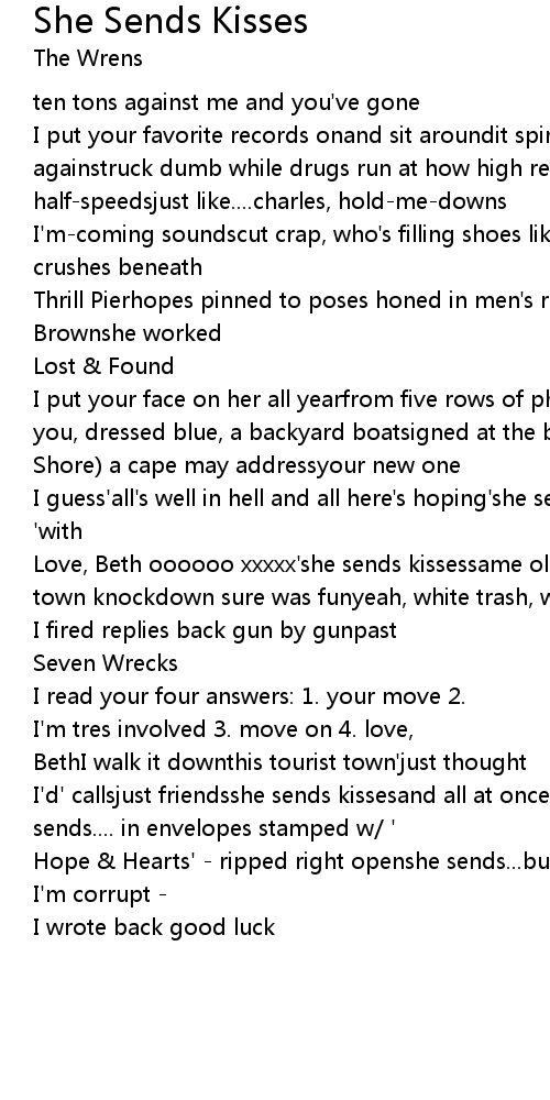 I'd' callsjust friendsshe sends kissesand all at once back doors blow openshe sends.... in envelopes stamped w/ ' |