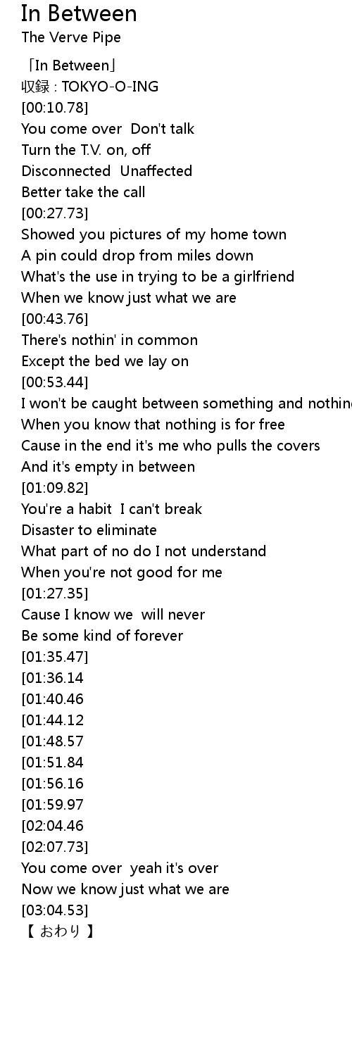 | [00:01.78] | 「In Between」 |
