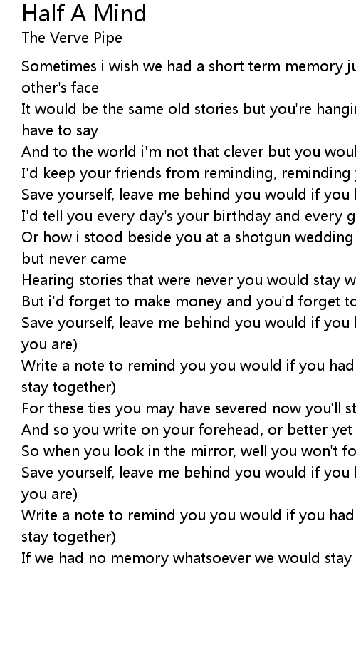 Write a note to remind you you would if you had half a mind (how effortless to stay together) |
