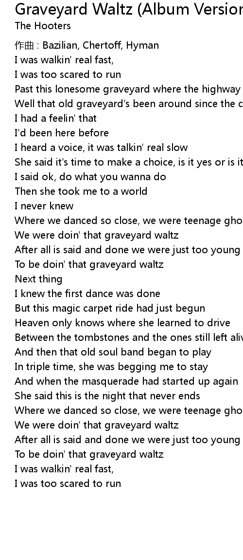 | To be doin' that graveyard waltz | |