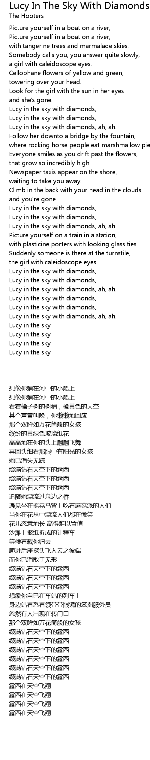 Lucy in the sky with diamonds, |