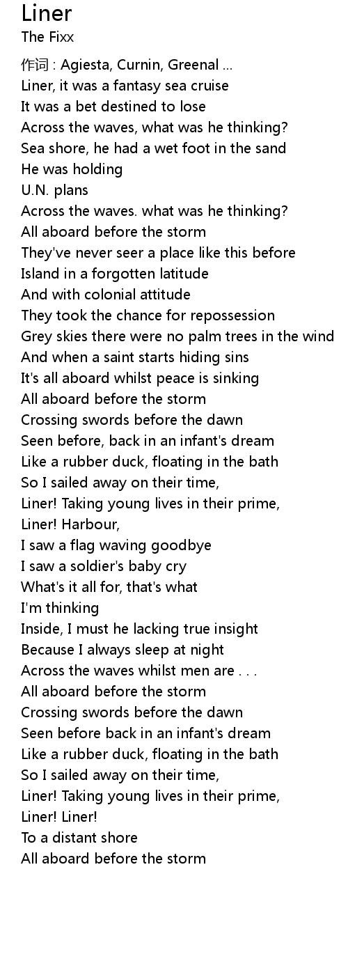 | Song | Liner |