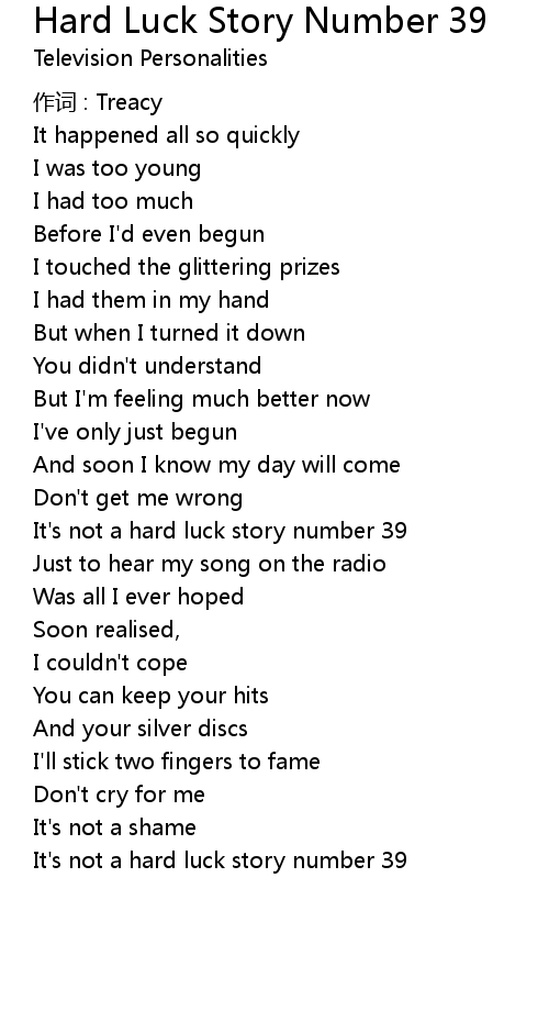 | It' s not a hard luck story number 39 |