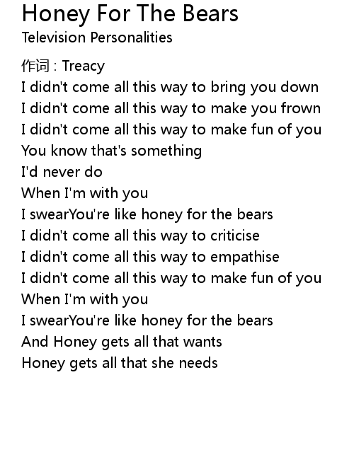 | Song | Honey For The Bears |