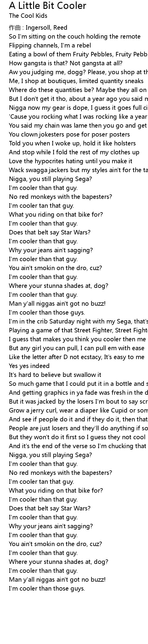 | I' m in the crib Saturday night with my Sega, that' s right | |