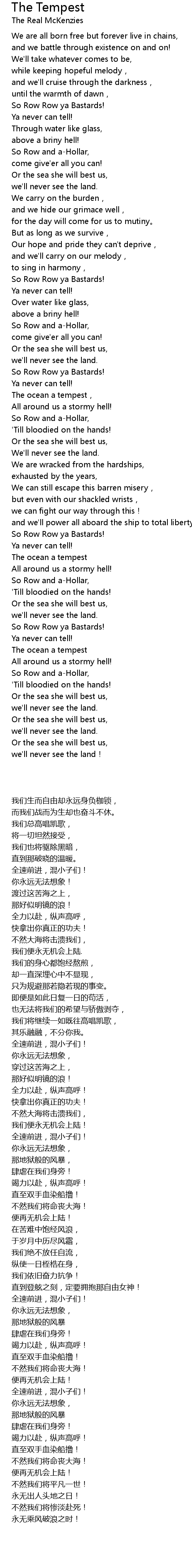 | Song | The Tempest |