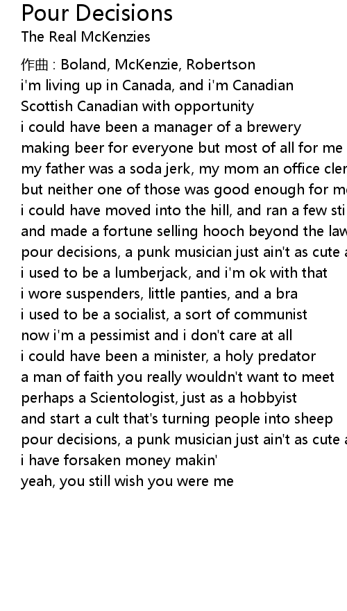| Song | Pour Decisions |