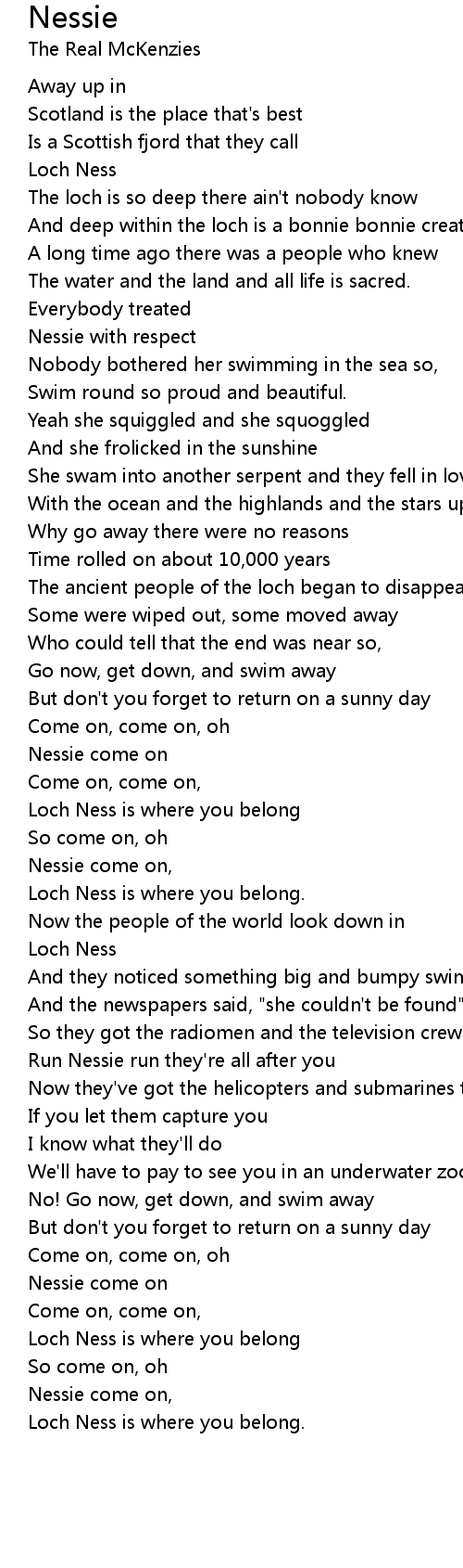And deep within the loch is a bonnie bonnie creature |