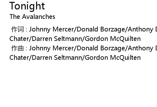 | [00:00.000] | 作曲 : Johnny Mercer/Donald Borzage/Anthony Diblasi/Robbie Chater/Darren Seltmann/Gordon McQuilten |