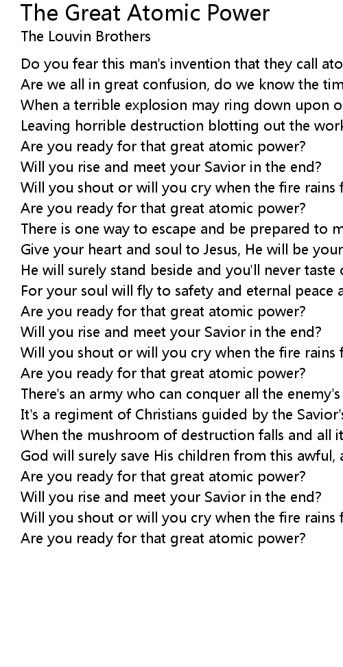 Do you fear this man's invention that they call atomic power? |