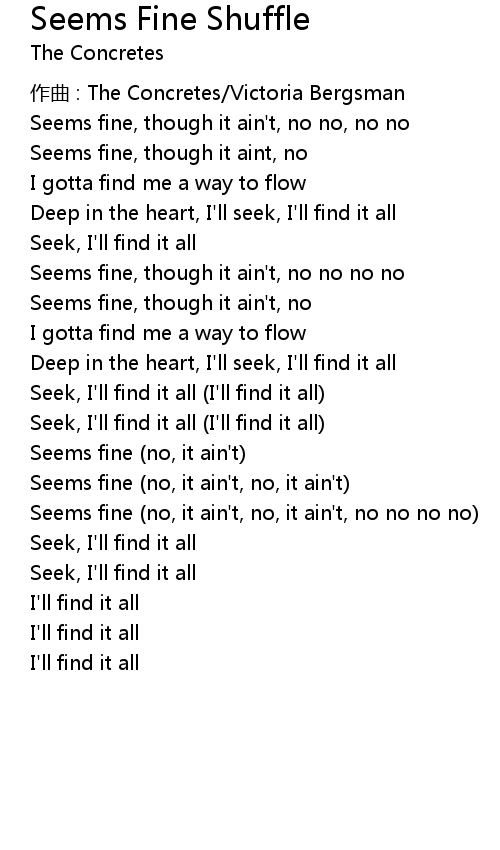 | Seems fine (no, it ain't, no, it ain't, no no no no) | |
