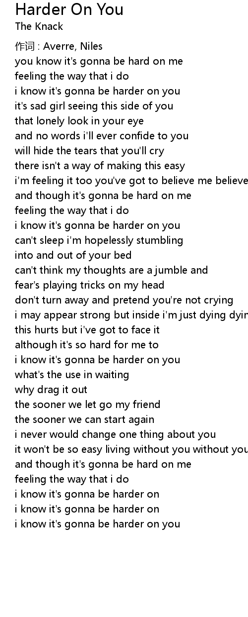 | i know it' s gonna be harder on you |