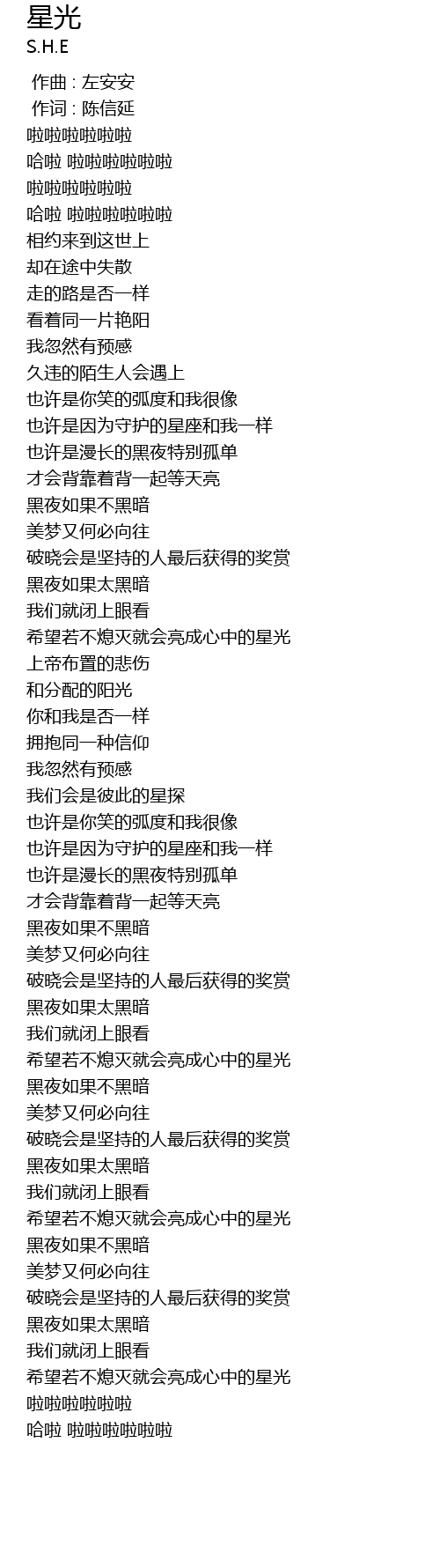 | Song | 星光 |