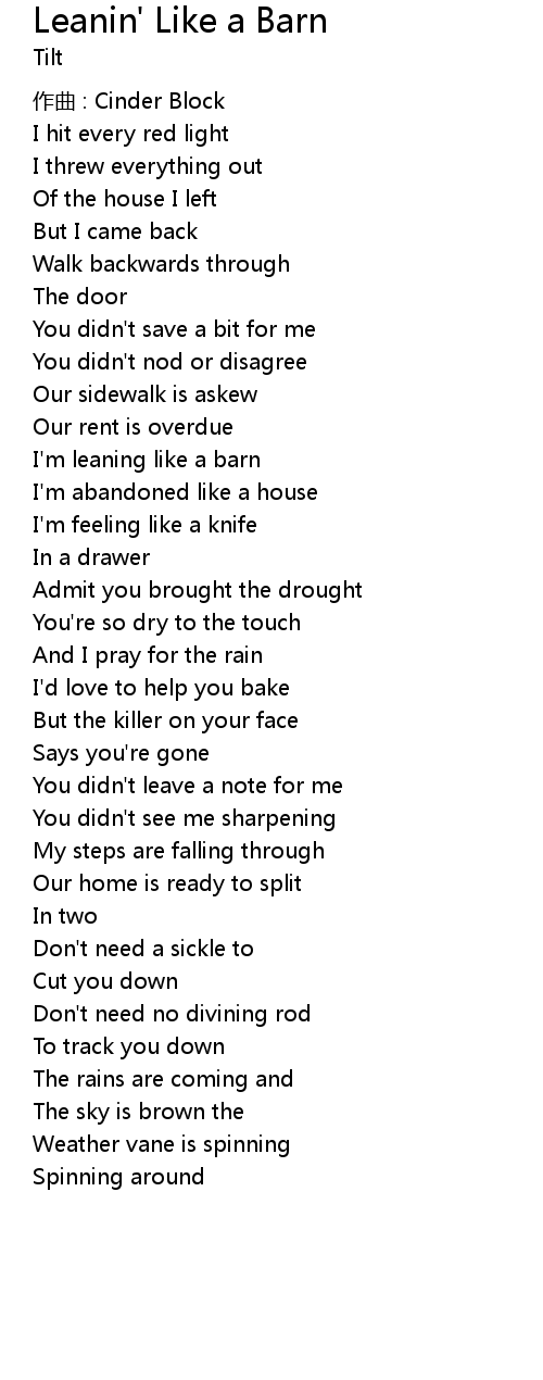 | I' m leaning like a barn | |