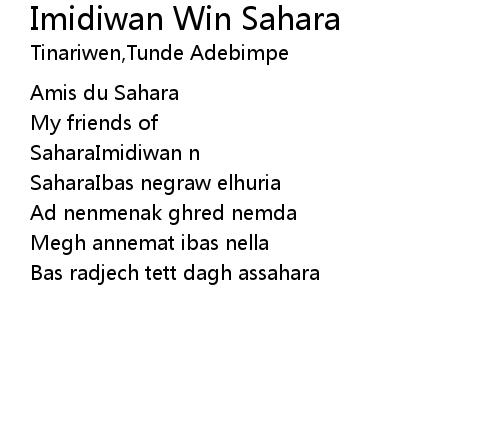 Imidiwan Win Sahara Lyrics