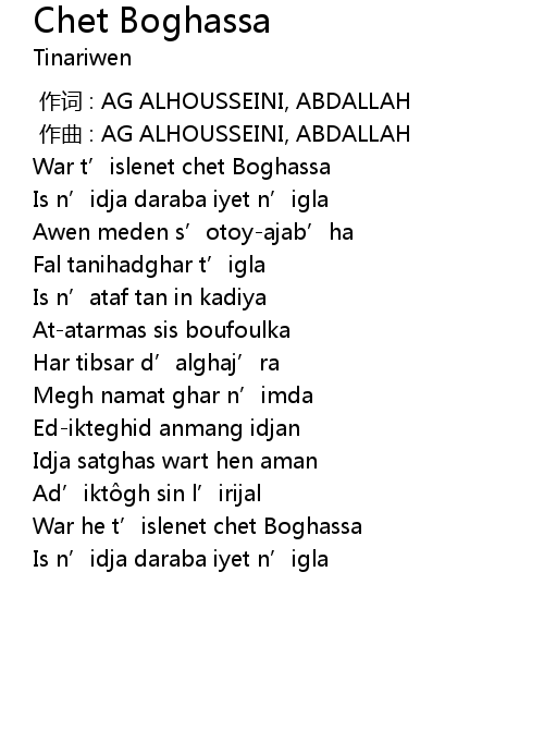 | [00:00.000] | zuò cí : AG ALHOUSSEINI, ABDALLAH |