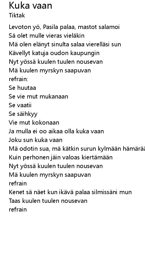 | Kenet s n et kun ik v palaa silmiss ni mun | |
